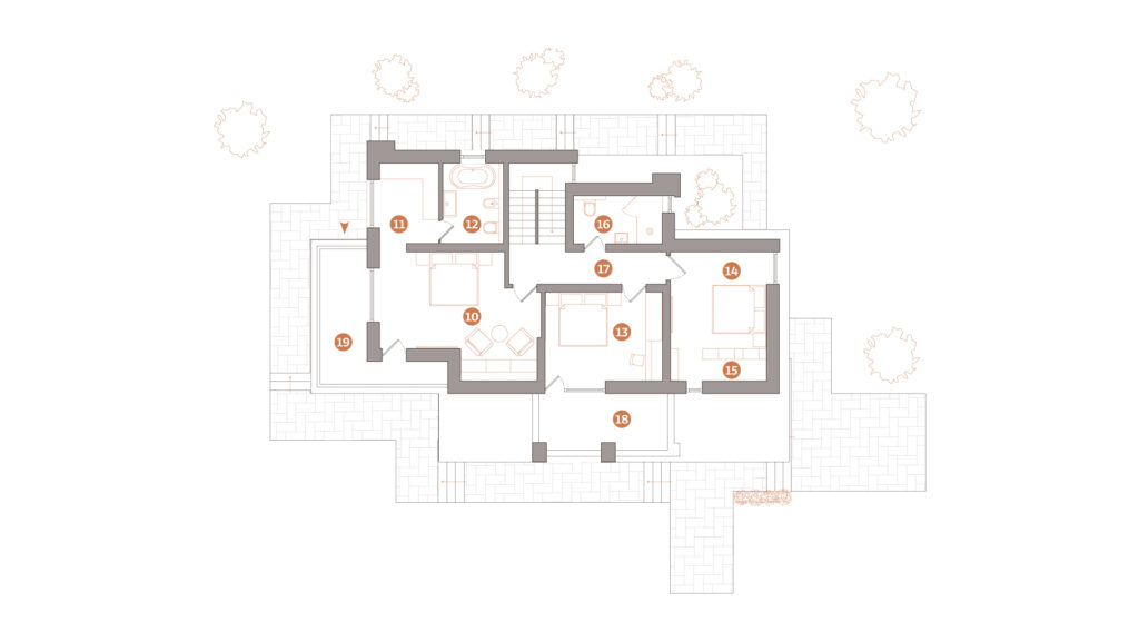 Dormitorul principal beneficiază, de asemenea, de un dressing care îi oferă o și mai mare comoditate. Acest nivel asigură o atmosferă caldă și primitoare, ideală pentru odihnă sau relaxare. Câteva holuri de acces și casa scării asigură legăturile între compartimente, pentru un acces ușor, intuitiv.